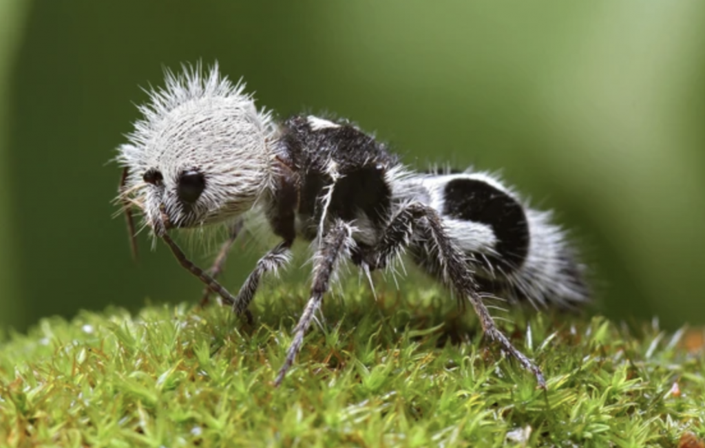 Loài côn trùng này có ngoại hình đáng yêu như một chú gấu trúc tí hon, nhưng thực tế, nó lại là một loài ong không cánh cực kỳ nguy hiểm được phát hiện ở Chile. Với lớp lông trắng-đen đặc trưng và kích thước chỉ khoảng 8mm, kiến Panda sở hữu cú đốt có thể gây đau đớn kéo dài nhiều giờ – đến mức nó còn được gọi là “sát thủ bò sát”. Mặc dù hiếm gặp, nhưng hãy tránh xa nếu bạn vô tình bắt gặp chúng ngoài tự nhiên!